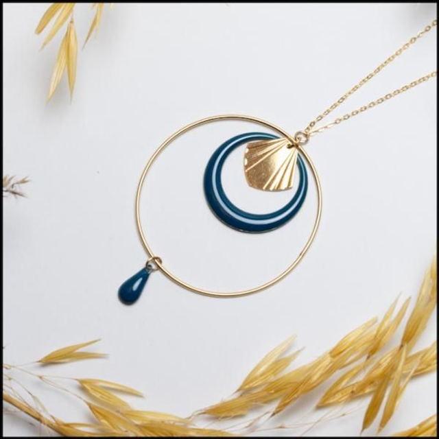 Sautoir (chaine de 70 cm) en laiton doré et émaillé.