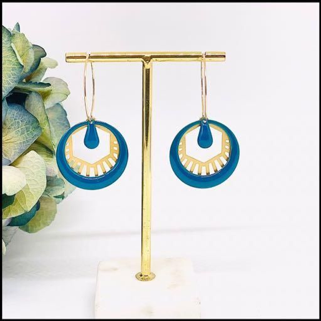 Boucles d'oreilles créoles en laiton doré et émaillé.