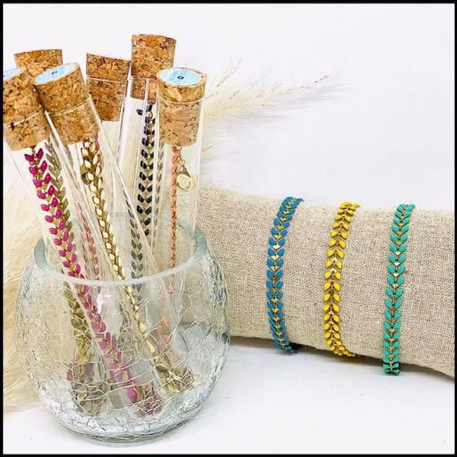 Bracelet vendu dans sa petite bouteille en verre.